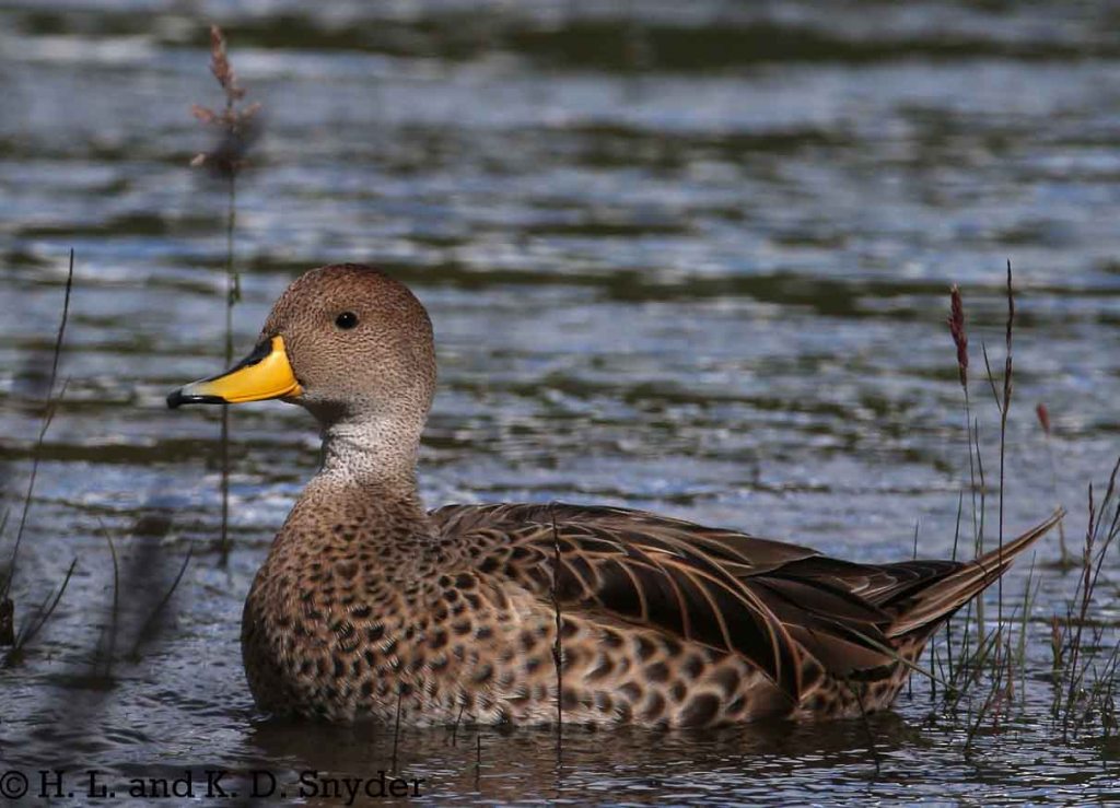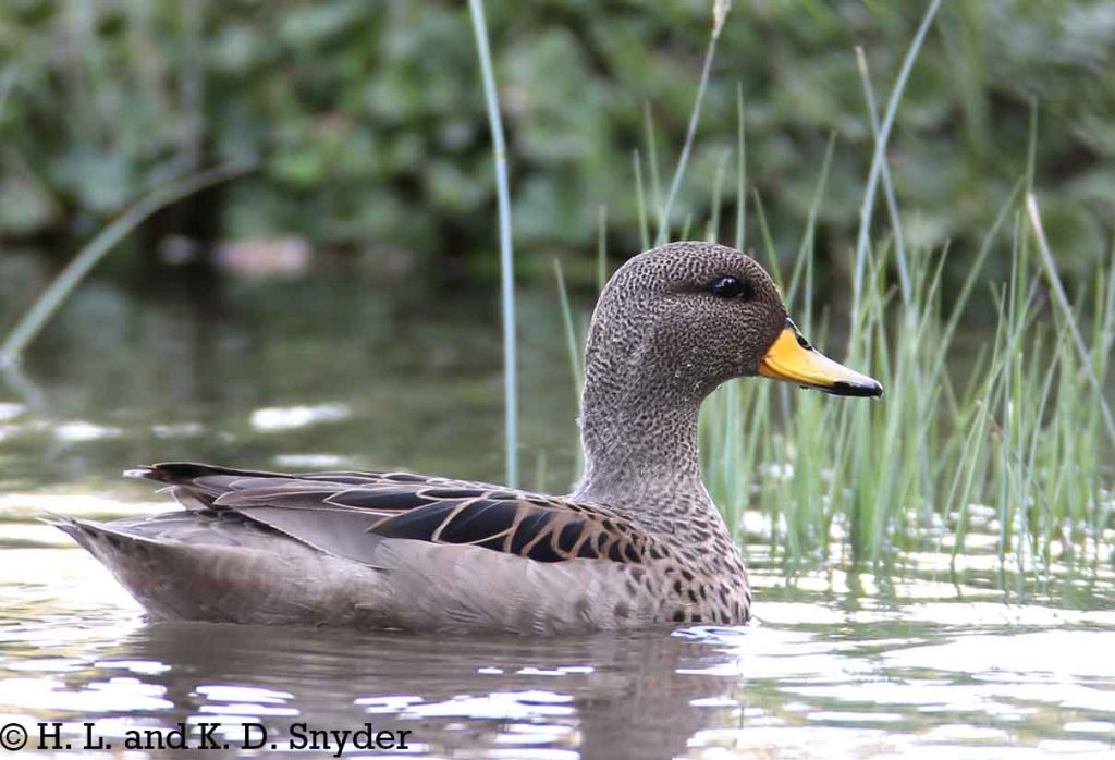 U – Z : Upland Goose , Wandering Albatross , White-bellied Storm-Petrel , White-bridled Finch . White-chinned Petrel , White-crested Elaenia , White-throated Caracara , Wilson’s Storm-Petrel , Yellow-billed Pintail , Yellow-billed Teal .