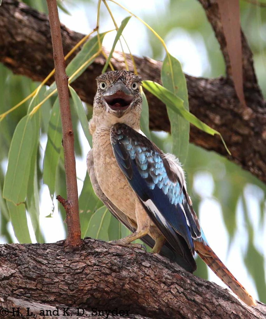 B continued : Blue-faced Honeyeater , Blue-winged Kookaburra , Brolga , Brown Falcon , Brown Goshawk , Brown Honeyeater , Bush Stone-curlew (or Bush Thick-knee .)