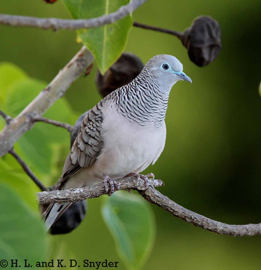 P – R : Pacific Duck , Pale Yellow Robin , Papuan Frogmouth , Peace Dove , Pied Butcherbird , Pied Cormorant , Pied Currawong , Pied Imperial Pigeon , Pied Monarch , Pink Robin , Plumed Whistling-Duck , Purple Swamphen , Rainbow Beeeater , Rainbow Lorikeet .