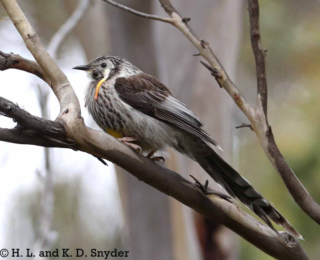 W continue : Willie Wagtail , Wompoo Fruit-dove , Wonga Pigeon , Yellow-billed Spoonbill , Yellow-faced Honeyeater , Yellow Honeyeater , Yellow-rumped Thornbill , Yellow-spotted Honeyeater , Yellow-tailed Black Cockatoo , Yellow Thornbill , Yellow-throated Honeyeater , Yellow-throated Miner , Yellow-throated Scrubwren , Yellow-tufted Honeyeater , Yellow Wattlebird , Zebra Finch .