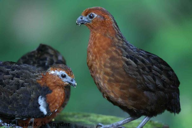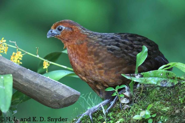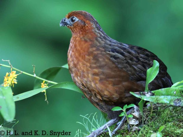 C – F : Canada Warbler , Chestnut Wood-Quail , Colombian Chachalaca , Crimson-rumped Toucanet , Crowned Woodnymph , Eared Dove , Fawn-breasted Brilliant , Flame-rumped Tanager .