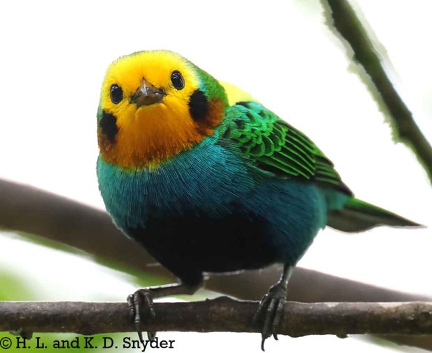 G – L : Golden-naped Tanager , Golden Tanager , Green Honeycreeper (f,m), Greenish Puffleg , Long-tailed Sylph (m,f).