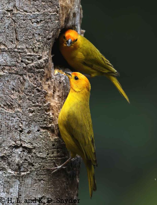 M – S : Multicolored Tanager , Orange-bellied Euphonia (m,f), Palm Tanager , Purple-throated Woodstar (f,m), Red-headed Barbet , Saffron-crowned Tanager , Saffron Finch , Scrub Tanager , Slate-throated Redstart , Specked Hummingbird , Steely-vented Hummingbird .
