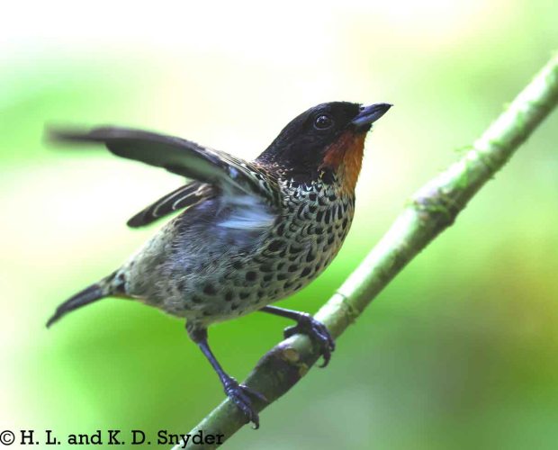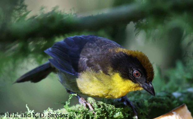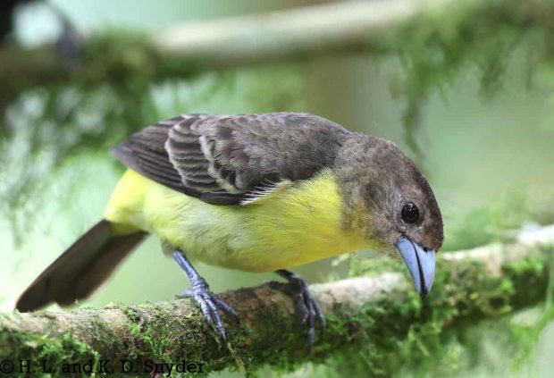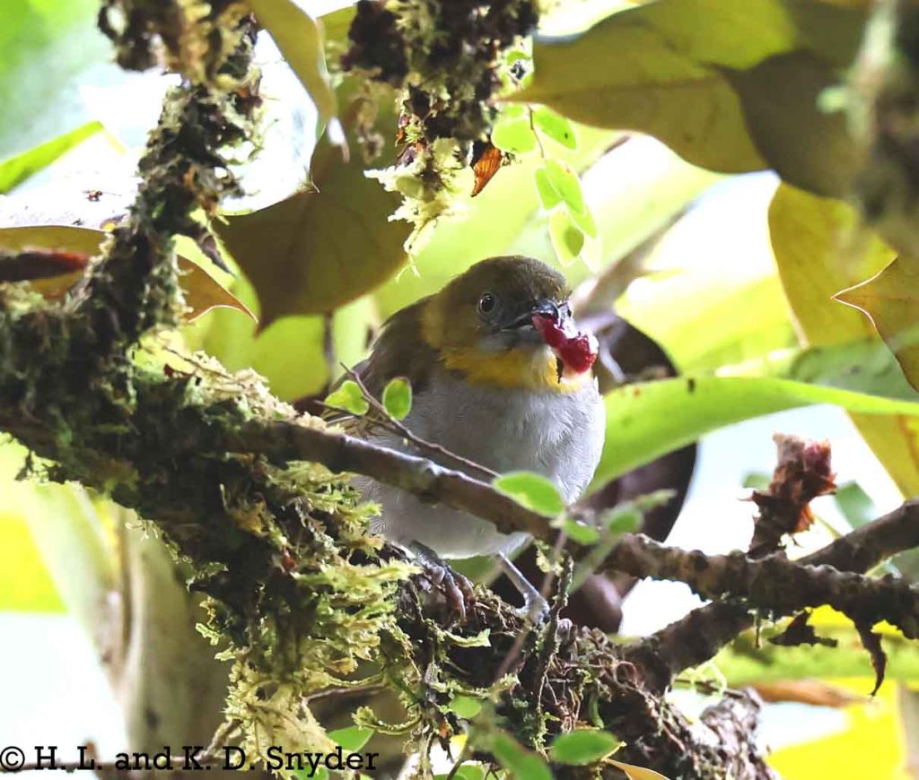 H – R : Lemon-rumped Tanager (lumped with Flame-rumped Tanager still), Olive Finch , Orange-bellied Euphonia , Ornate Flycatcher , Purple-bibbed Whitetip , Red-faced Spinetail , Rufous-throated Tanager , Rusty-margined Flycatcher .