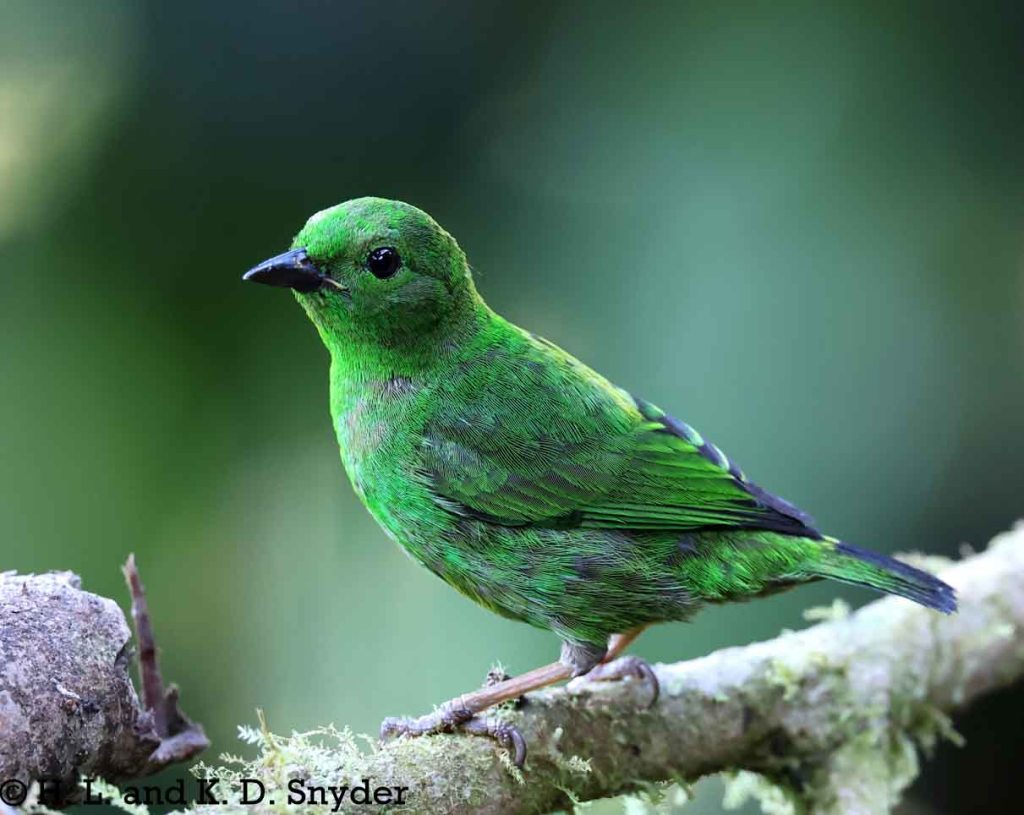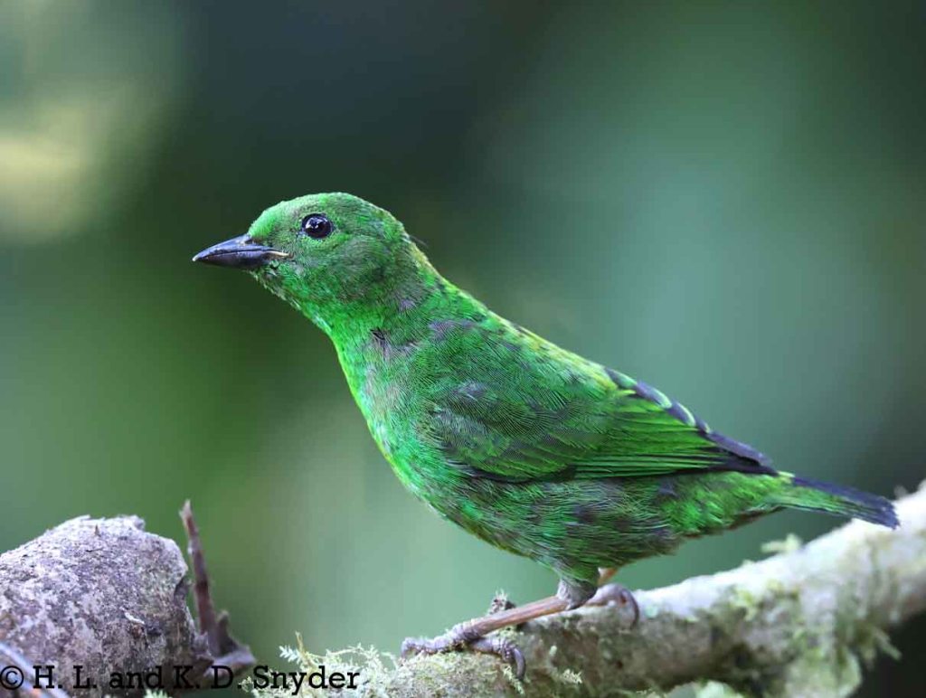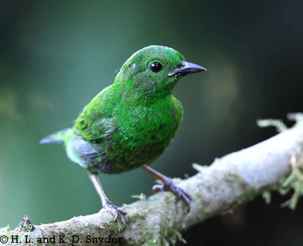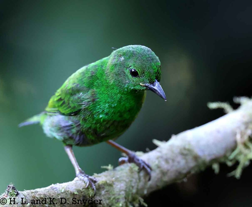 D – G : Empress Brilliant , Flame-rumped Tanager (f), Glistening-green Tanager , Golden-faced Tyrannulet , Gray-and-gold Tanager , Grayish Piculet , Green Honeycreeper , Green Thorntail .