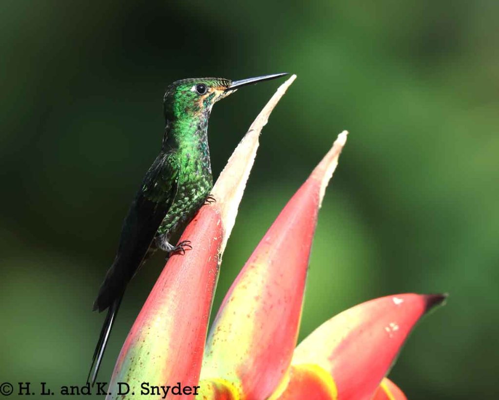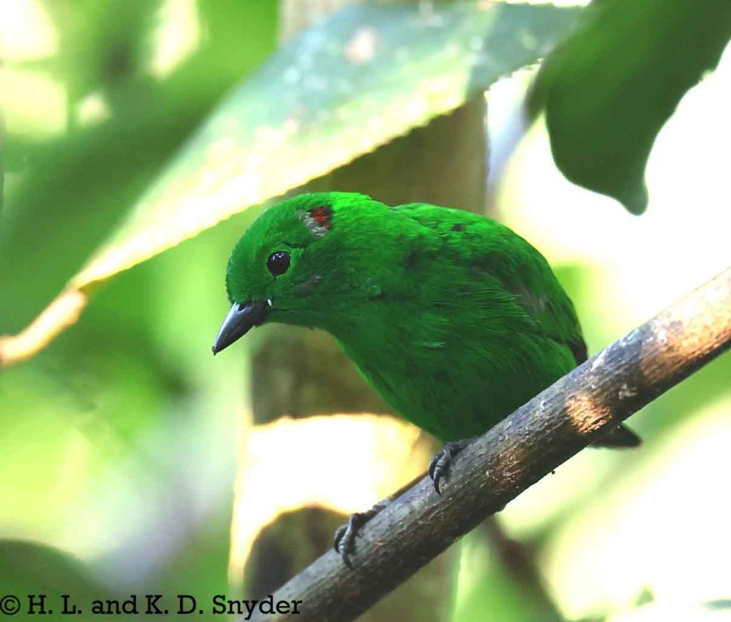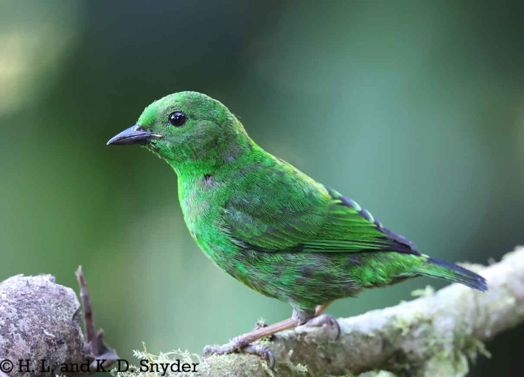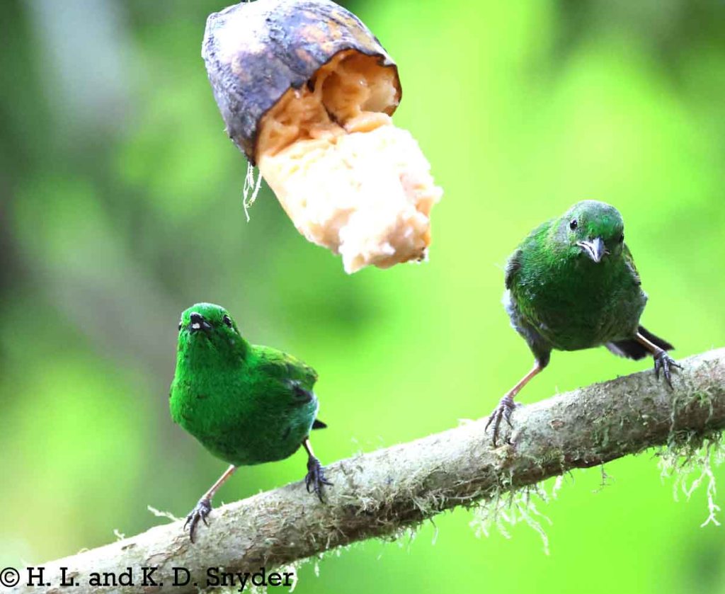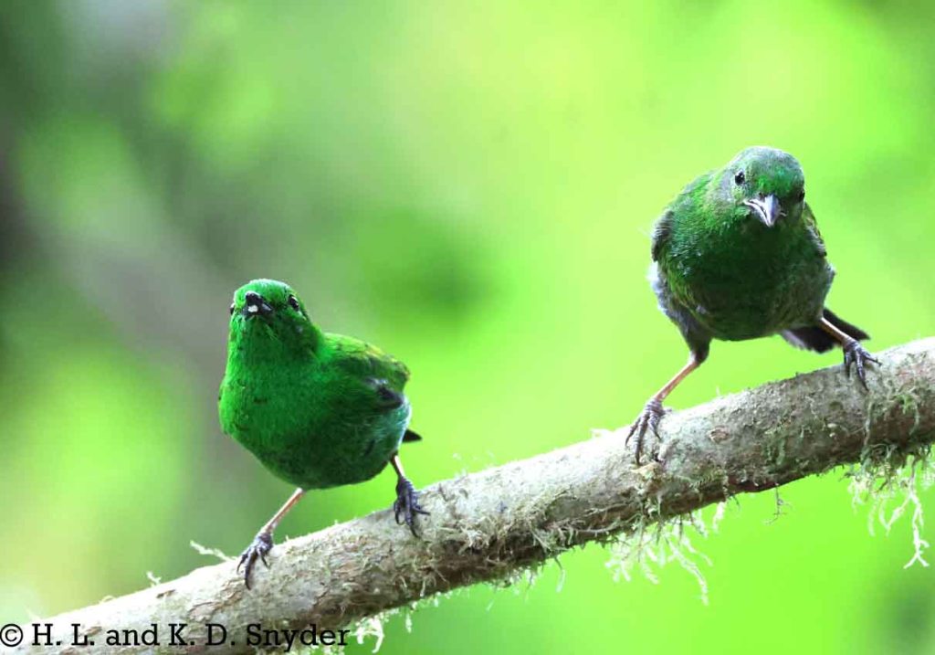 D – G : Empress Brilliant , Flame-rumped Tanager (f), Glistening-green Tanager , Golden-faced Tyrannulet , Gray-and-gold Tanager , Grayish Piculet , Green Honeycreeper , Green Thorntail .