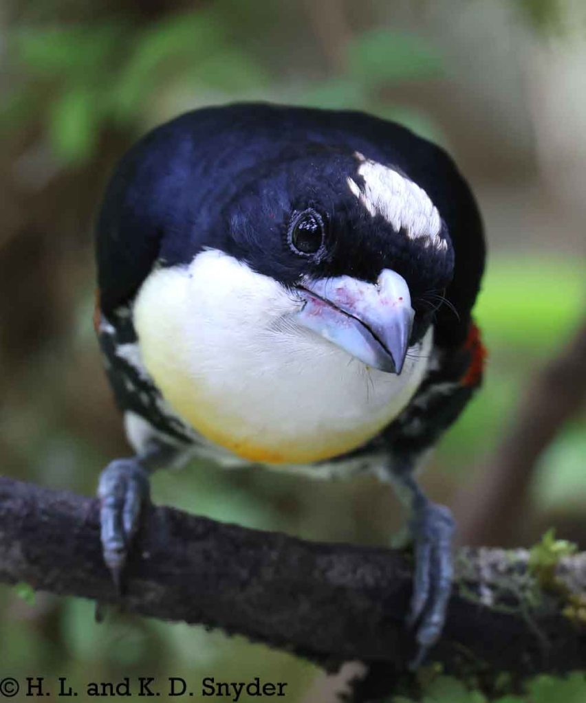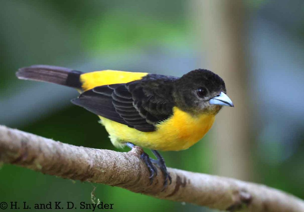 S – : Scarlet-rumped Cacique , Silver-throated Tanager , Spot-crowned Barbet , Summer Tanager , Thick-billed Euphonia , Toucan Barbet , Velvet-purple Coronet , White-lined Tanager , White-necked Jacobin , Yellow-throated Chlorospingus .