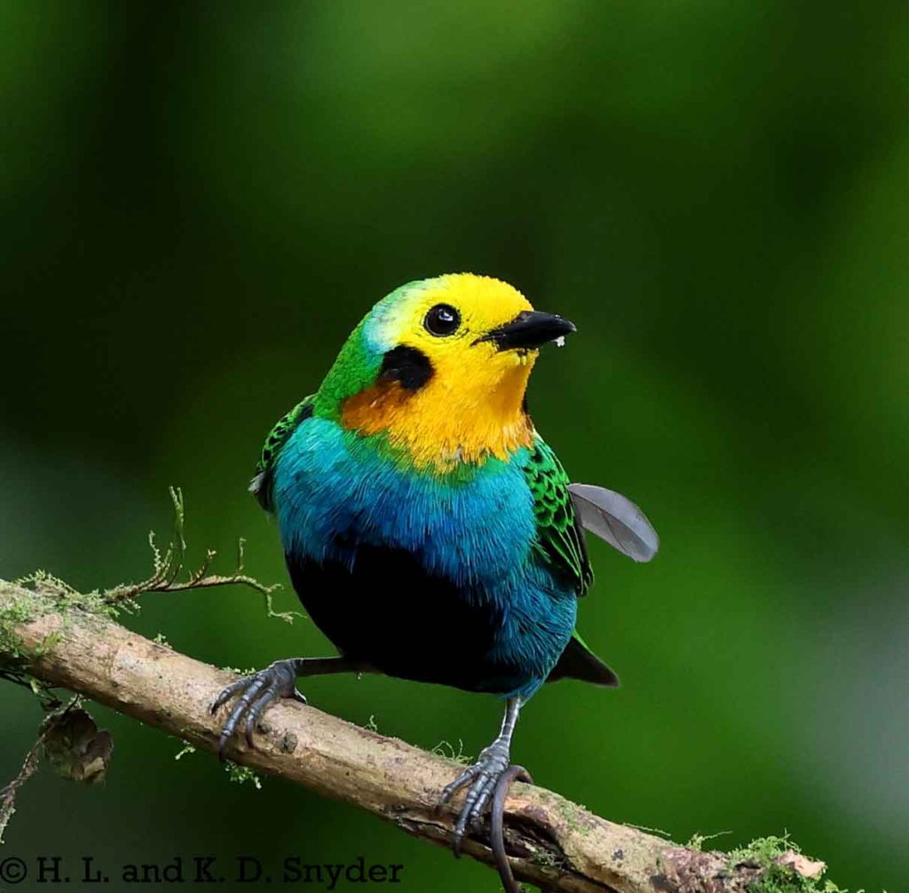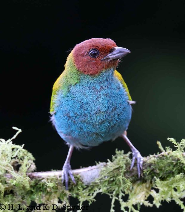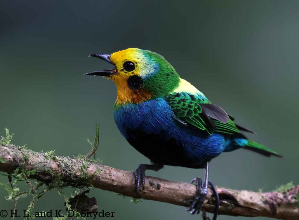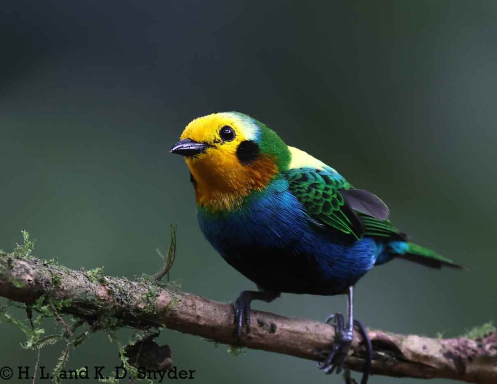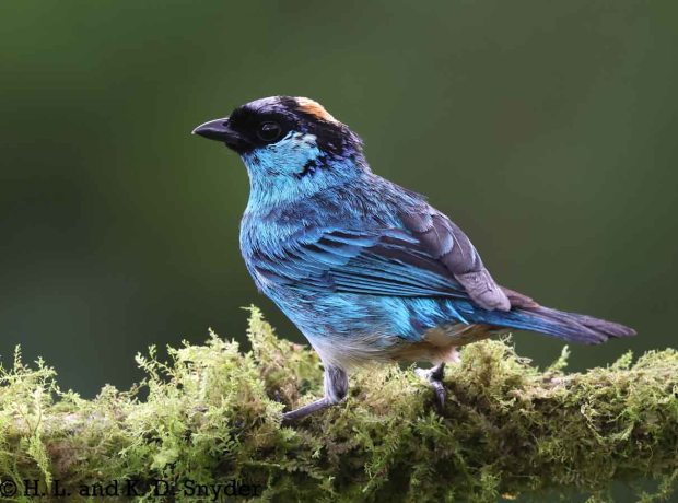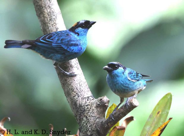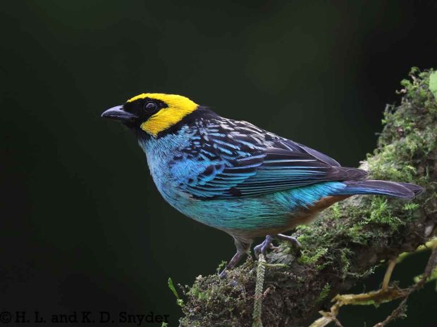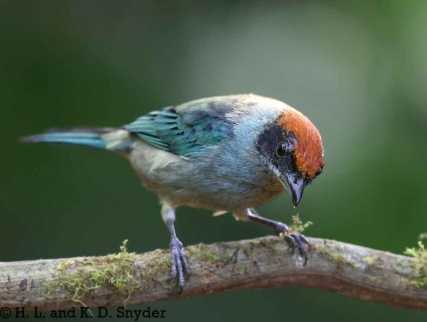 A – B : Bay-headed Tanager , Black-capped Tanager , Black-winged Saltator , Blue-winged Mountain Tanager , and Brown-capped Vireo .