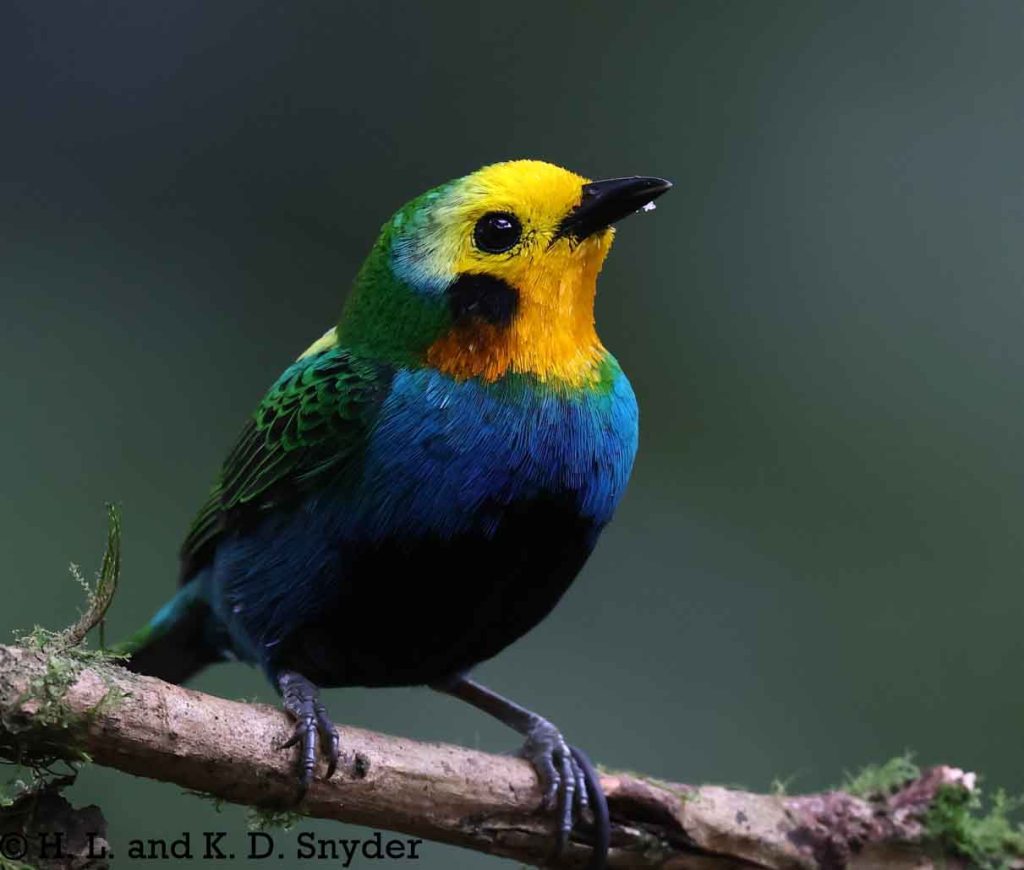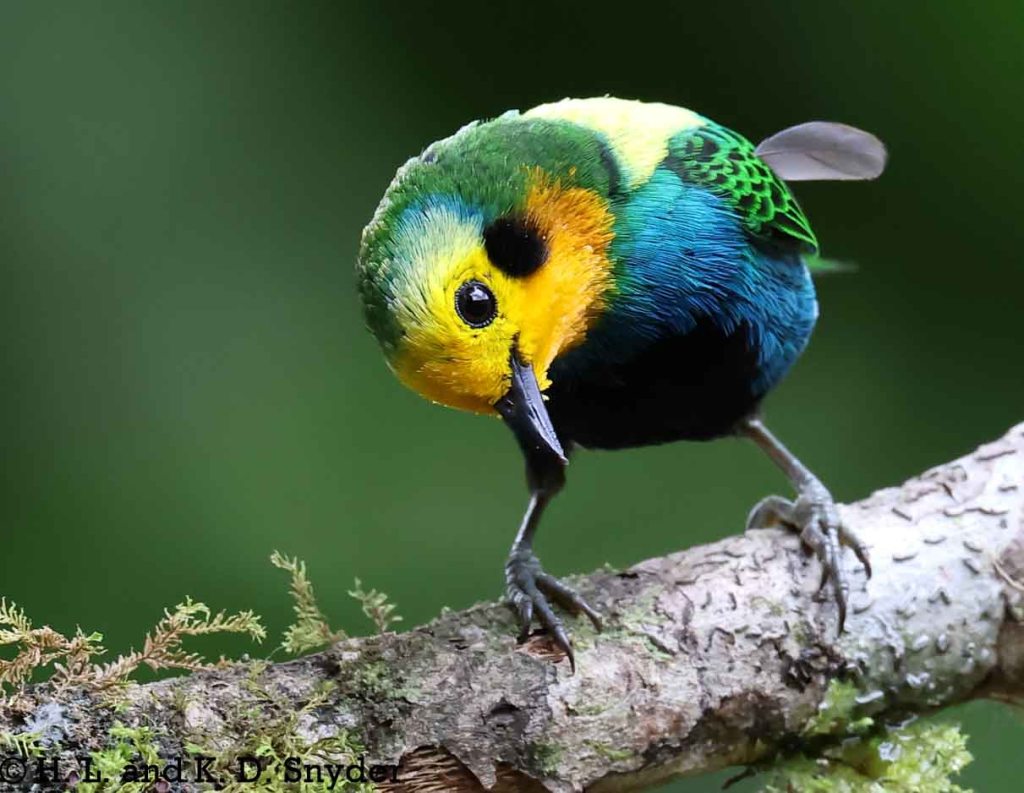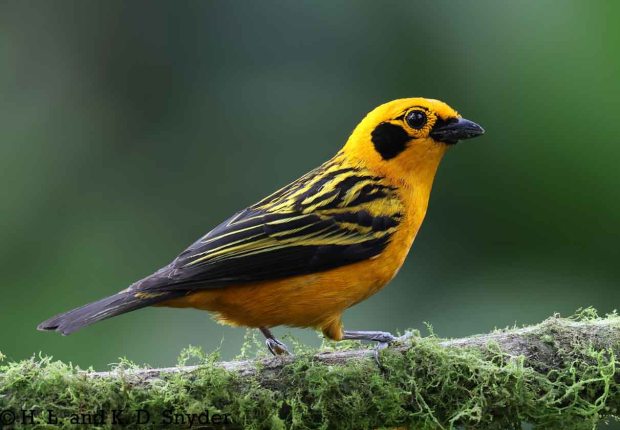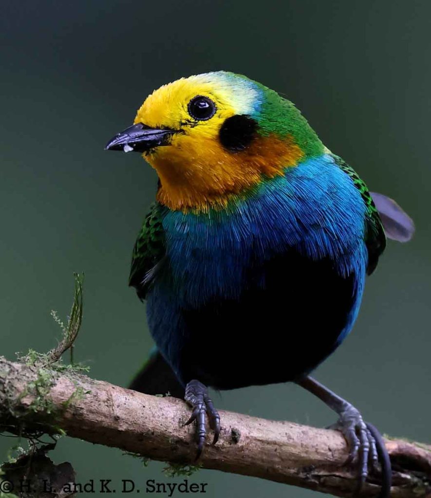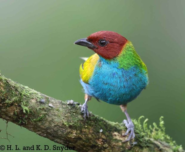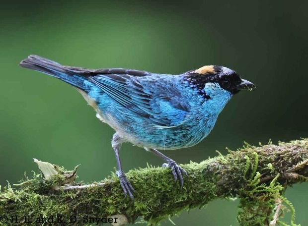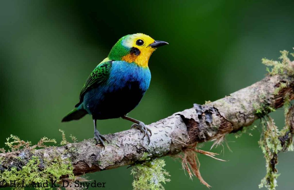 A – B : Bay-headed Tanager , Black-capped Tanager , Black-winged Saltator , Blue-winged Mountain Tanager , and Brown-capped Vireo .