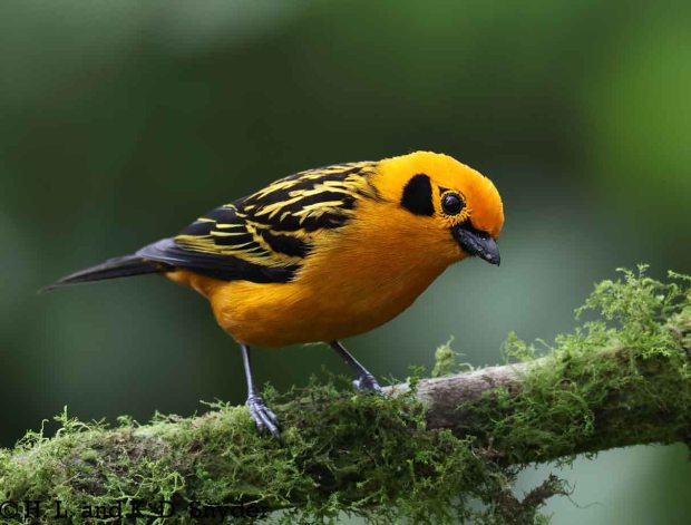 C – G : Chestnut-capped Brushfinch , Chestnut Wood-Quail , Colombian Chachalaca , Flame-rumped Tanager , Golden-naped Tanager , Golden Tanager , Gray Seedeater , Green Honeycreeper (f, m).