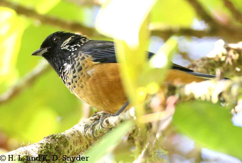 S – S : Scale-crested Pygmy-Tyrant , Scaly-breasted Hummingbird , Scarlet-rumped Cacique , Scarlet-thighed Dacnis , Scintillant Hummingbird , Short-tailed Hawk , Silver-throated Tanager , Slate-throated Redstart , Slaty-backed Nightingale-Thrush , Slaty-capped Flycatcher , Slaty Flowerpiercer , Slaty-tailed Trogon , Social Flycatcher , Sooty-capped Chlorospingus , Sooty-faced Finch , Spangel-cheeked Tanager , Speckled Tanager , Spotted Barbtail , Spotted Sandpiper , Spotted Woodcreeper , Squirrel Cuckoo , Steely-vented Hummingbird, Streak-headed Woodcreeper , Stripe-tailed Hummingbird , Stripe-headed Sparrow , Summer Tanager .