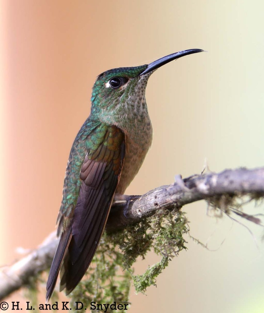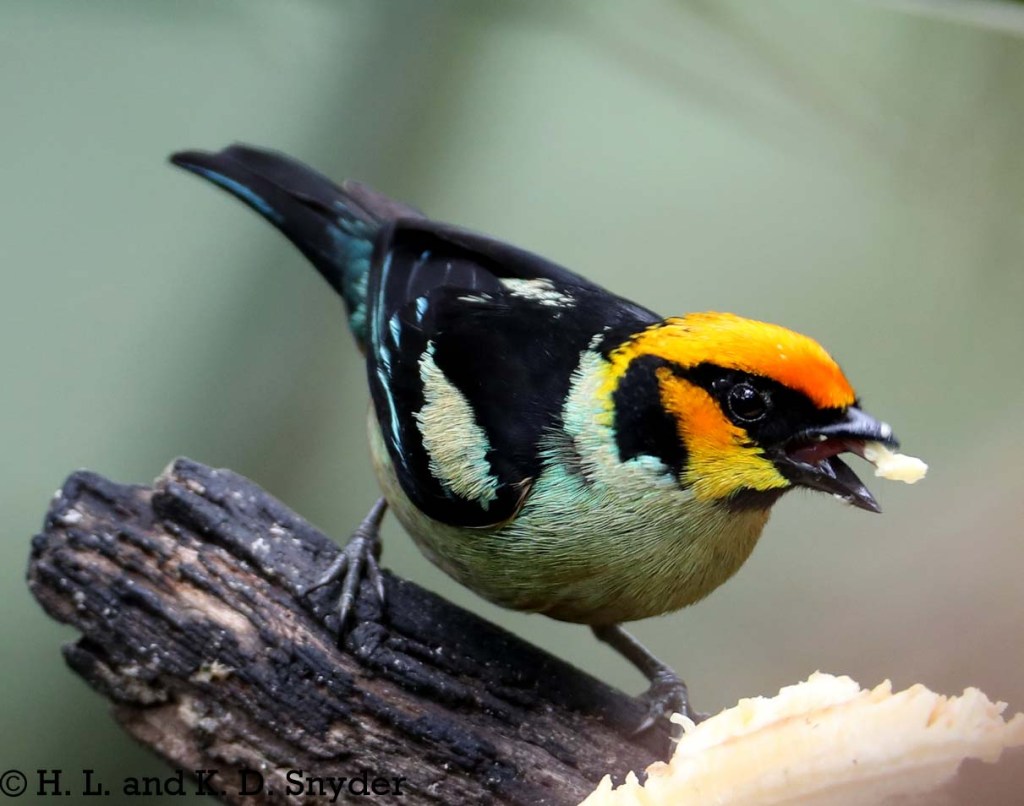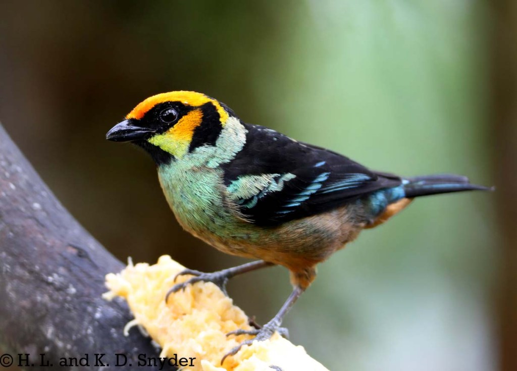 F – G : Fawn-breasted Brilliant , Flame-faced Tanager , Flame-rumped Tanager , Giant Hummingbird , Golden-bellied Grosbeak , Golden-crowned Flycatcher , Golden-headed Quetzal , Golden-naped Tanager , Golden Tanager , Gorgeted Sunangel , Gray-breasted Mountain-Toucan , Gray-rumped Swift , Great Sapphirewing , Great Thrush , Green-and-black Fruiteater , Green-crowned Brilliant , Green Thorntail , Green Jay , Green Violetear .