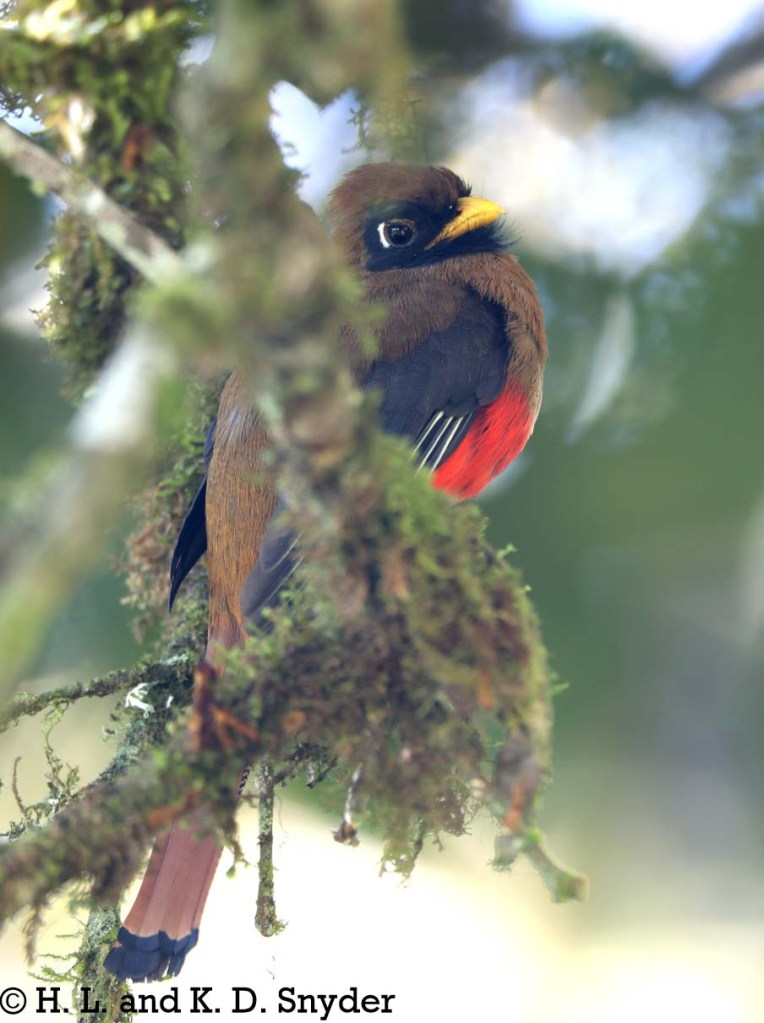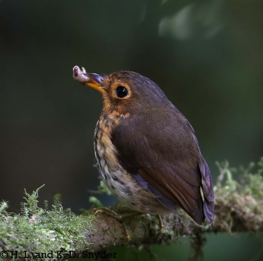 H – O : Hooded Siskin , Lacrimose Mountain-Tanager , Lemmon-rumped Tanager , Long-tailed Sylph , Long-wattled Umbrellabird , Lyre-tailed Nightjar , Masked Flowerpiercer , Masked Trogon , Masked Water-Tyrant , Metalloc-green Tanager , Montane Woodcreeper , Mountain Cacique , Mountain Velvetbreast , Moustached Antpitta , Northern Silvery Grebe Ochre-breasted Antpitta , Ochre-breasted Tanager , Olivaceous Piculet , Olive-crowned Yellowthroat , Orange-bellied Euphonia , Orange-billed Sparrow , and Ornate Flycatcher .