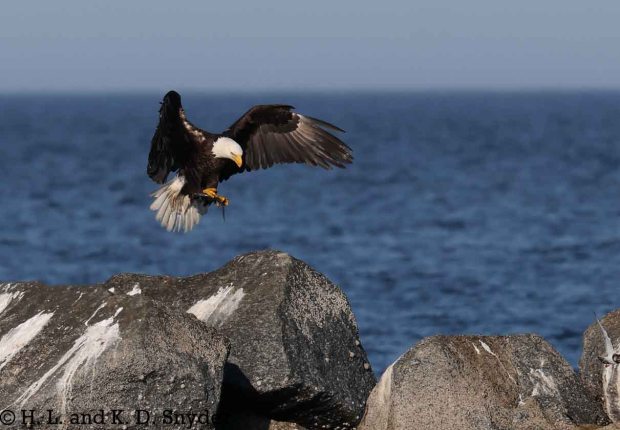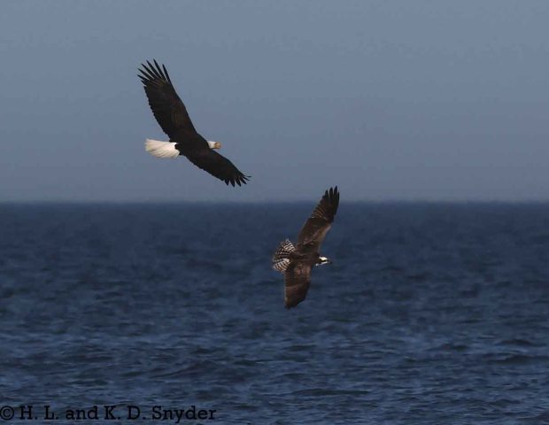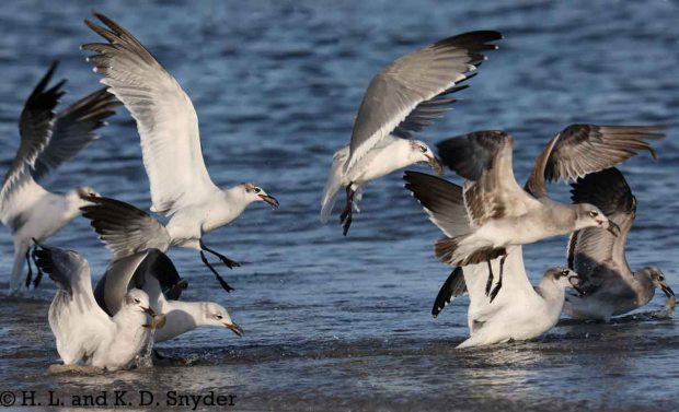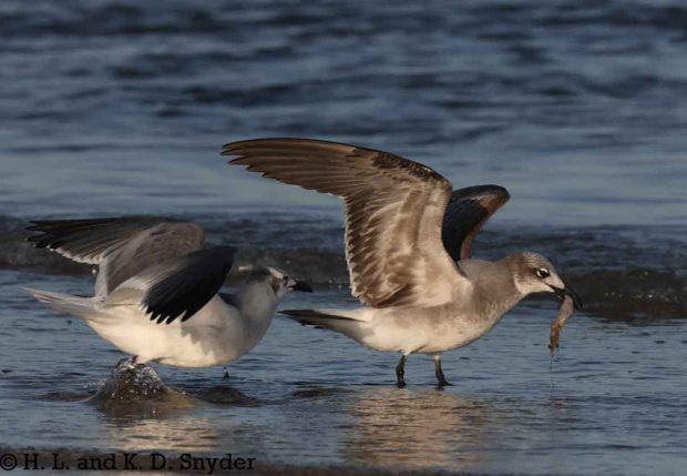 1/10/26 Amelia Island and Fort George Island, FL: We noticed some action out on the beach where a Bald Eagle was trying to steal an Osprey’s fish. The eagle did make the osprey drop his catch, grabbed it, and brought it to some rocks to feast. Also: Brown Pelican bathing, Dunlin , Hooded Merganser (f,m), Indian Peafowl , Laughing Gull group , Little Blue Heron (white juv.), and American Herring Gull .