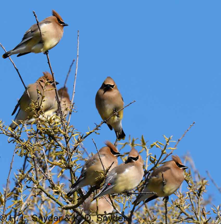 3/29/2024 Amelia Island, FL: A Cedar Waxwing flock was waiting for a Northern Mockingbird to finish eating berries off of a holly tree. Also: Red-shouldered Hawk , Eastern Bluebird , and Yellow-throated Warbler . A young Bald Eagle had fledged from the Crane Island nest and perched awkwardly above us!