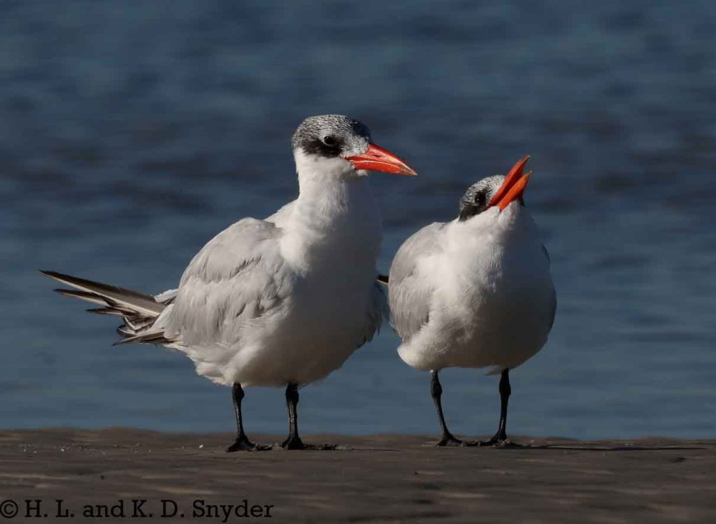 11/16/21 With a brilliant day in store, we headed back to Jacksonville, FL: We found a Wilson’s Plover flock interspersed with the more usual Semipalmated Plover (more of those below), Willet , White Ibis , an actively fishing Reddish Egret pair , Great Blue Heron , Great Black-backed Gull , and an adult Caspian Tern with a begging juvenile.