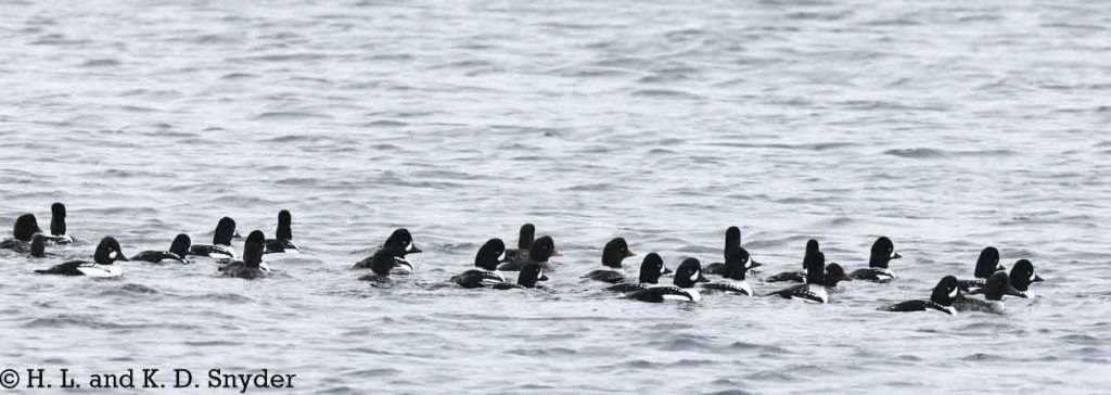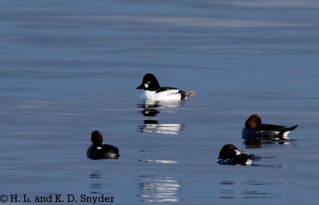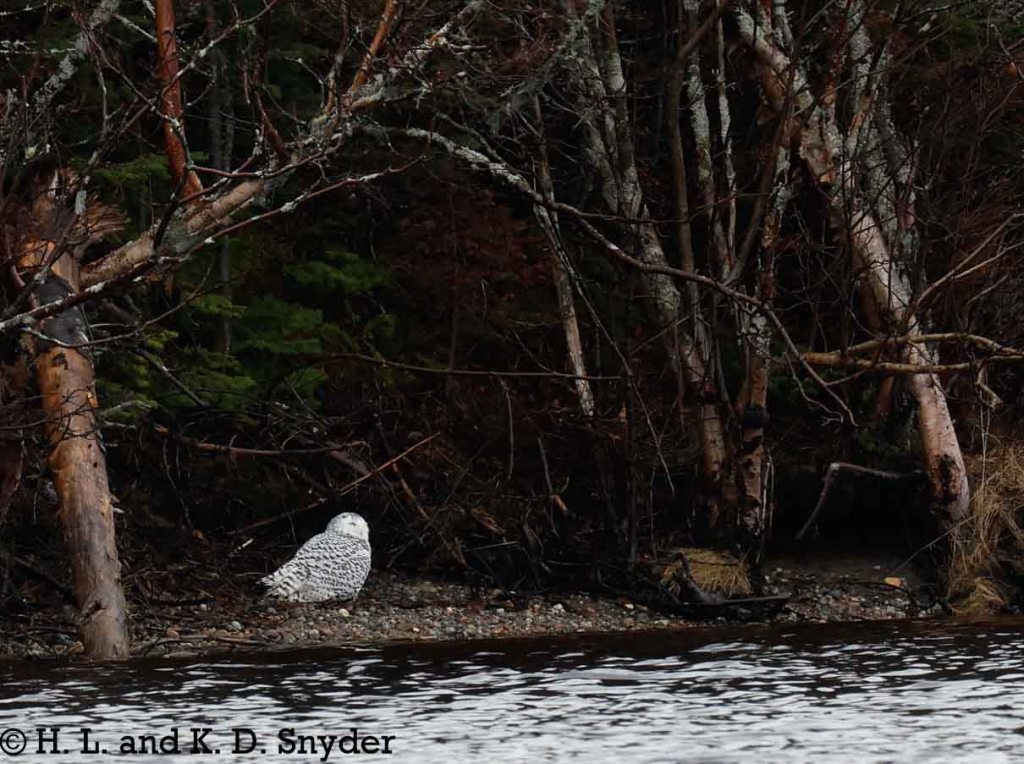 11/28/24 near Matane, CANADA: We had heard other birders talking of Snowy Owls being seen and we thought there was no chance of seeing it in the few days we had in Canada. Well, we drove up to some rocks overlooking the river and immediately saw these yellow eyes peeking over a rock. This juvenile beauty was content to rest right in front of us and we were careful not disturb it. We also saw Barrow’s Goldeneye flocks along the shore with American Black Duck flocks.