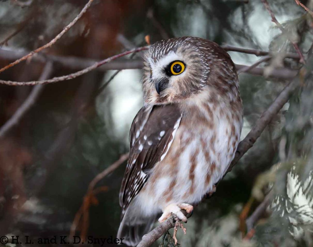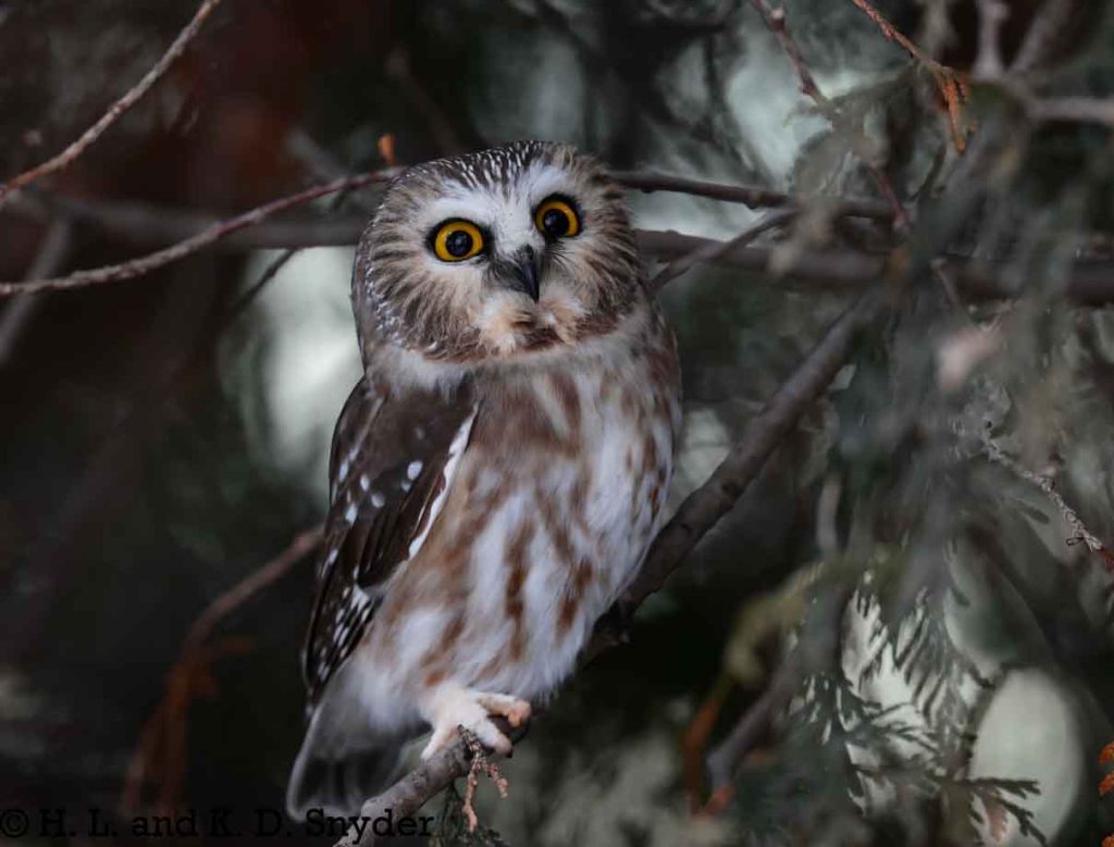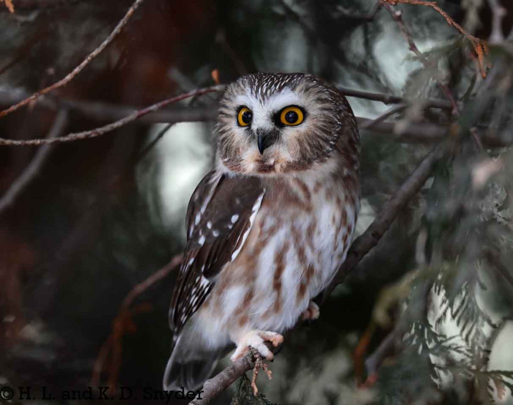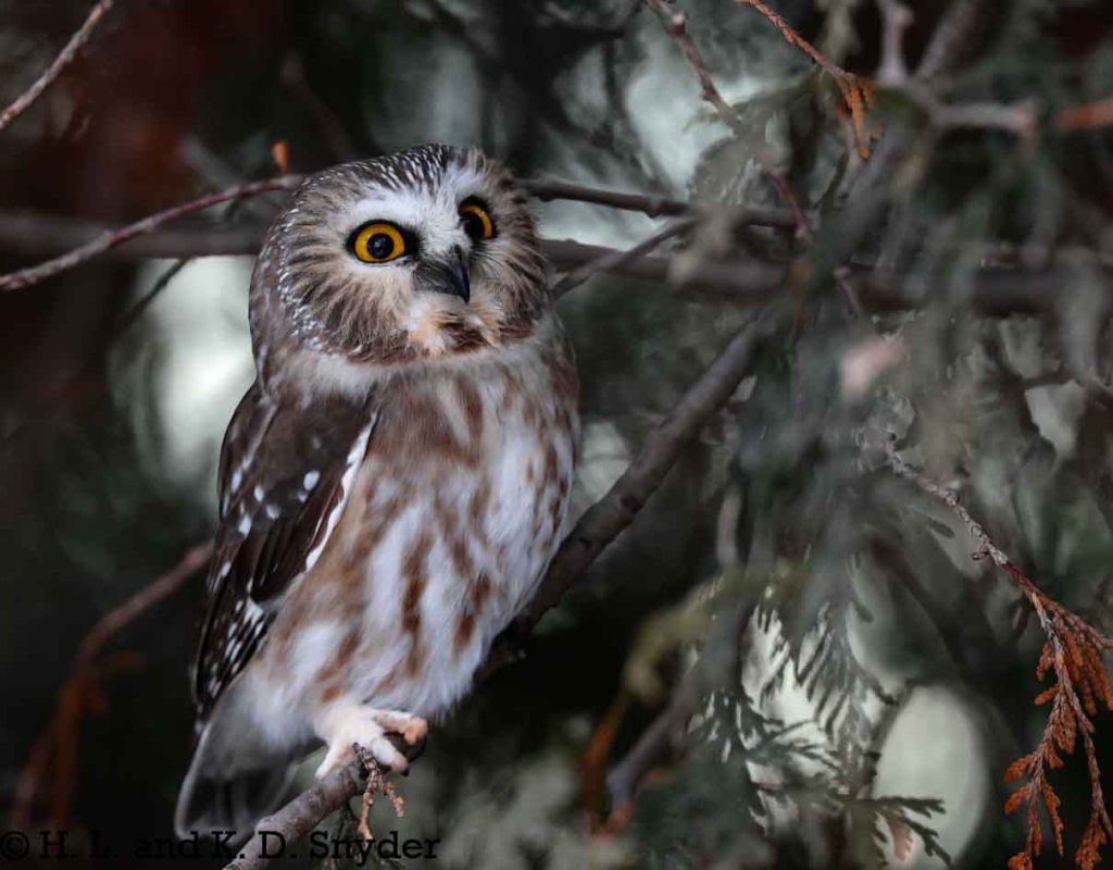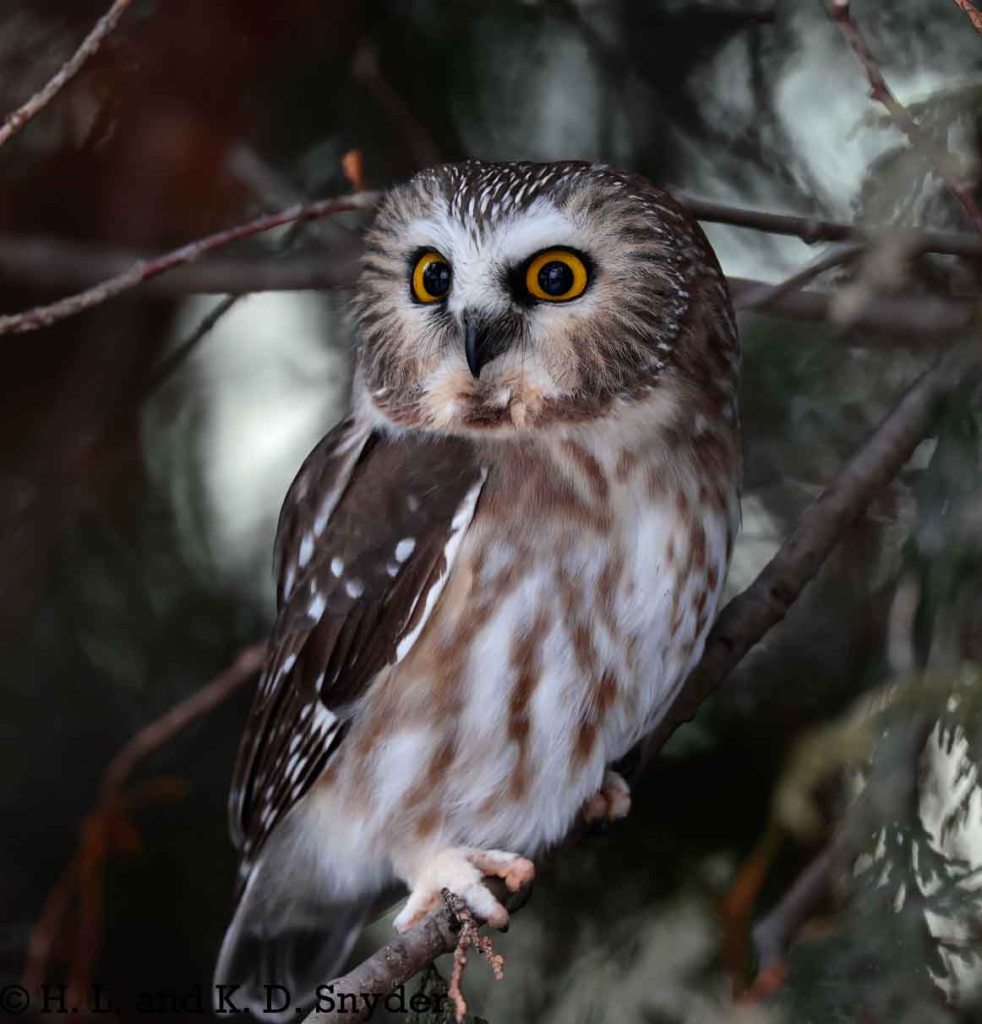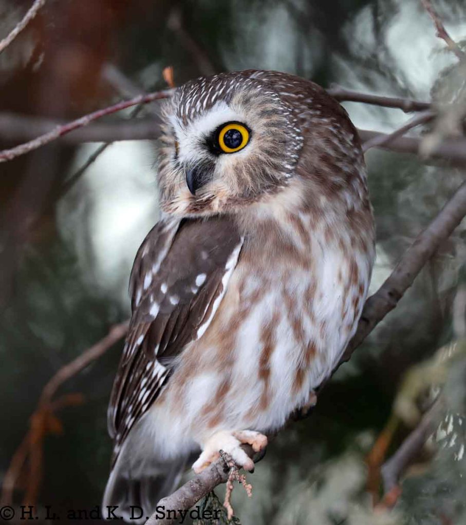 12/3/24 Quebec City, Canada: With the help of Yves Aubry (Thank you so very much! It was wonderful to meet you!), we found a little Northern Saw-whet Owl. The owl was so small and his eyes were so large – he looked a bit startled most of the time. He did not seem to mind us as he calmly looked about, studying us and watching birds go by. We left him sitting peacefully where he was. We also caught White-breasted Nuthatch , White-throated Sparrow , and Black-capped Chickadee . Thanks again Yves!