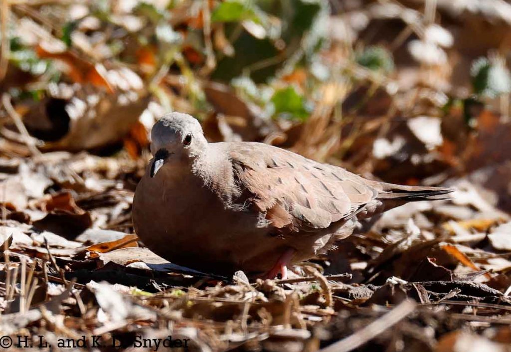 1/8/24 Patagonia, AZ: A Rufous-backed Robin pair and a Ruddy Ground-Dove were being seen at (or near) Patton’s, so we showed up on this beautiful, chilly morning and caught the robins eating berries. The dove was backlit, but we did catch a Violet-crowned Hummingbird and Broad-billed Hummingbird freezing their tootsies off.