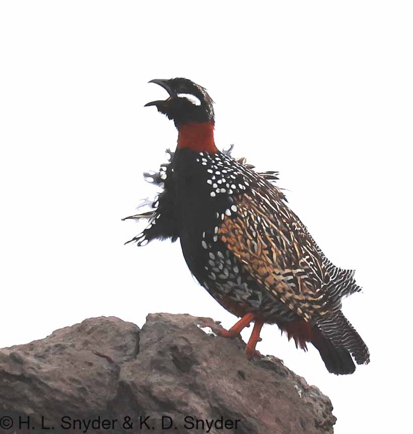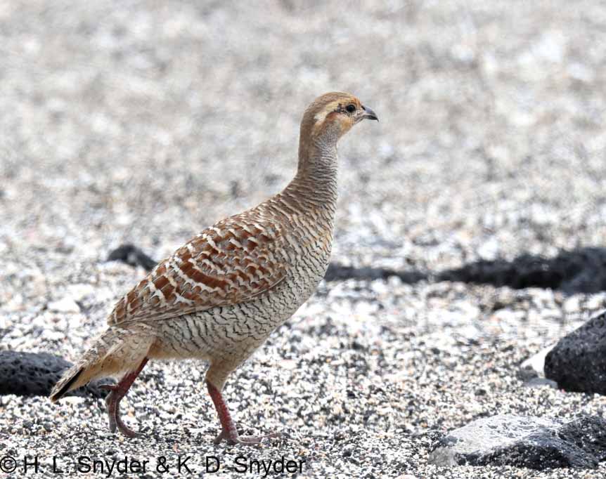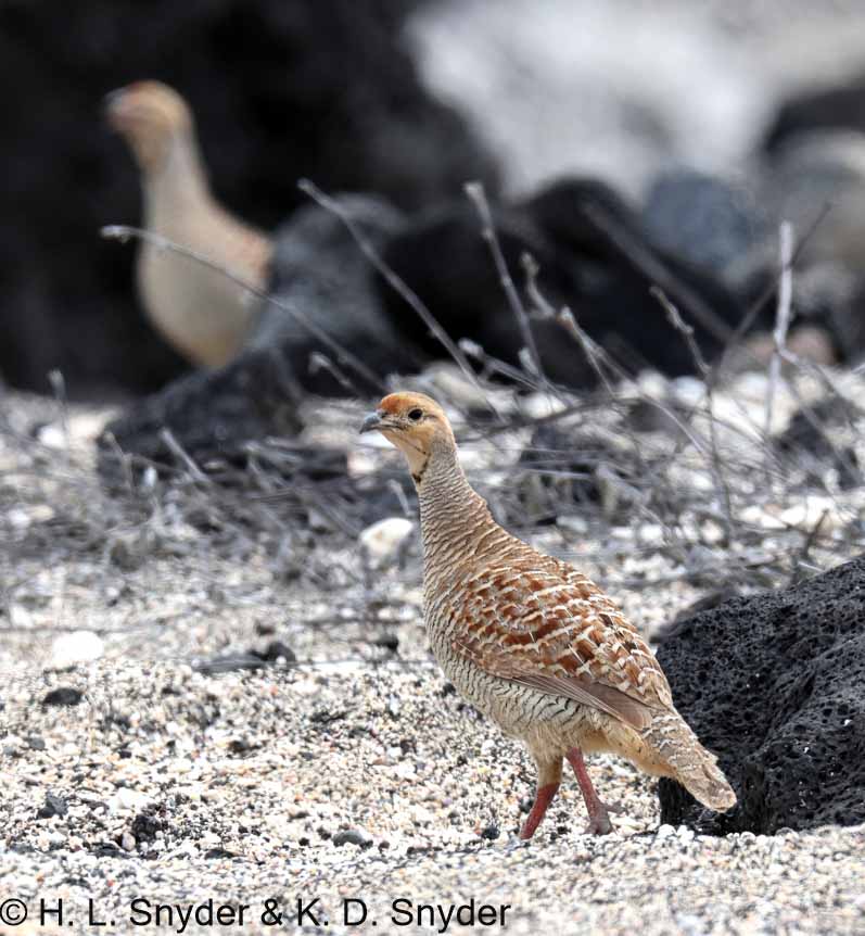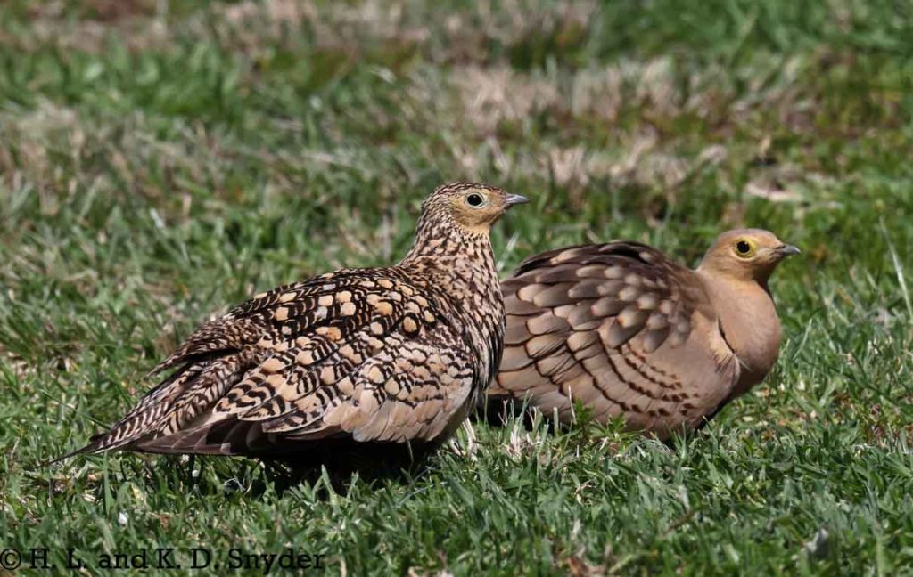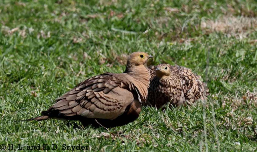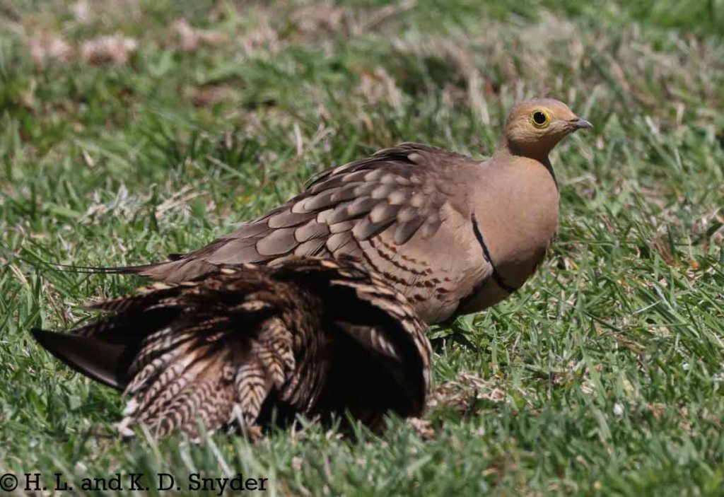3/3/23 Big Island, HI: A Chestnut-bellied Sandgrouse study (m-chest ring, f – patterned throat) – because they came up to our car! Also: Erckle’s Spurfowl , Hawaiian Coot , Kalij Pheasant males interacting , Pacific Golden-Plover , Yellow-billed Cardinal (ad, imm,).