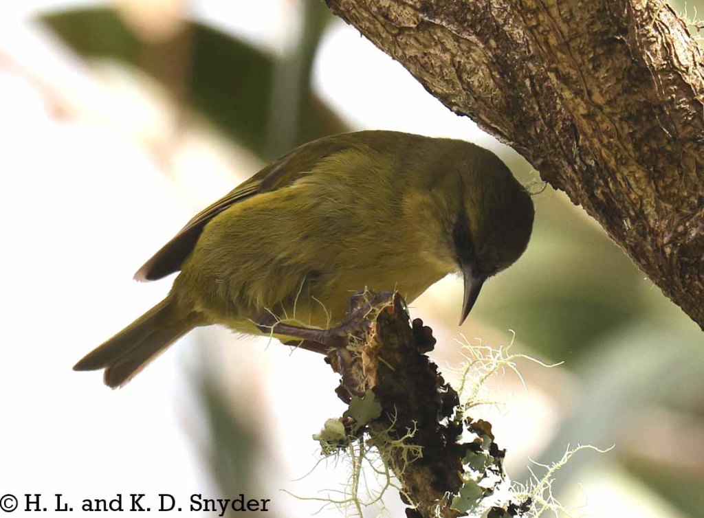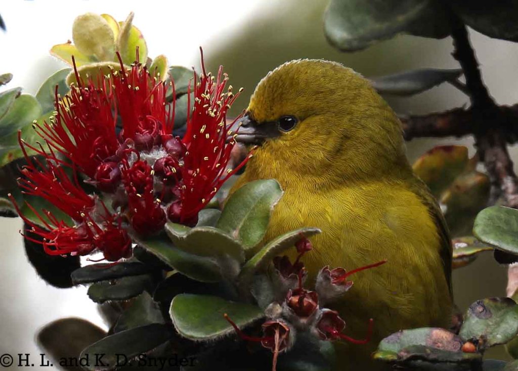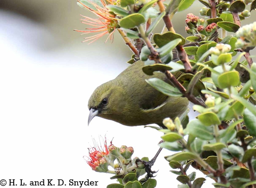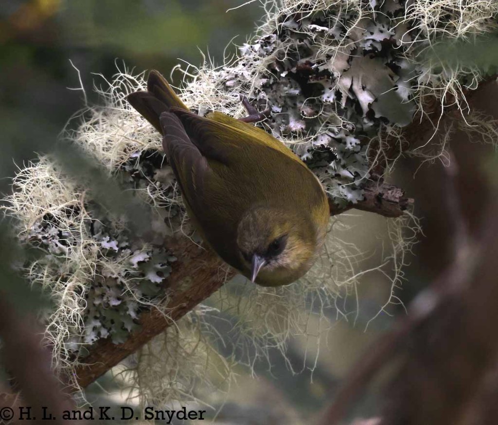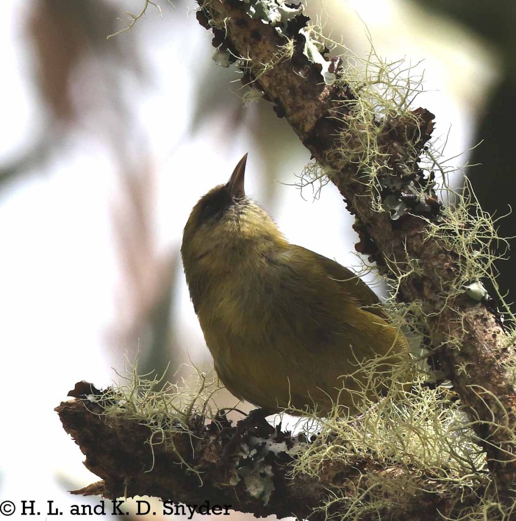 Then, two of us remained there while Mandy led Hal and two others up to see the Puaiohi, Akekee , and what might be the last two wild Akikiki (all Kauai endemics). (These two will be collected and hopefully will breed in captivity, safe from the mosquitoes.) We don’t usually post other photographers’ photos on our website but we would very much like to thank Jonathan Slifkin – a wonderful young birder with a swift camera finger – who allowed us to post his images here since Hal had left our camera with me. Appreciate it, Jonathan! Below are Jonathan Slifkin’s images of Puaiohi , Akekee , and Akikiki (all Kauai endemics with populations plummeting).