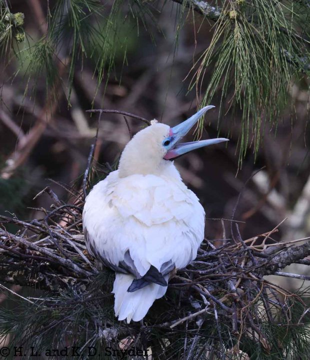 3/7/23 Oahu, HI: Day 1 of tour. Our “Hawaiian Birding Tours” began with Mandy and we thought the first day was spectacular: Oahu Amakihi (Oahu endemic. Juv. has the wingbars- last pic), Oahu Elepaio nest (Oahu endemic, m-banded, f, and 2chicks) , Red-tailed Tropicbird , Sooty Tern , Brown Booby , Common Gallinule (HI Subsp.), White Tern , Yellow-fronted Canary , Pacific Golden-Plover , Hawaiian Duck hybrid (True Hawaiian Duck found on Kauai – pics later), Java Sparrow , White-rumped Shama , Scaly-breasted Munia, distant White-tailed Tropicbird nesting in the cliffs, and Common Myna .