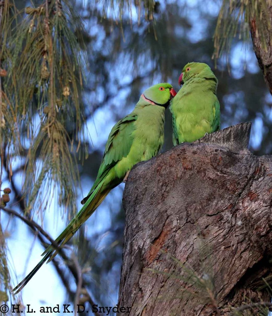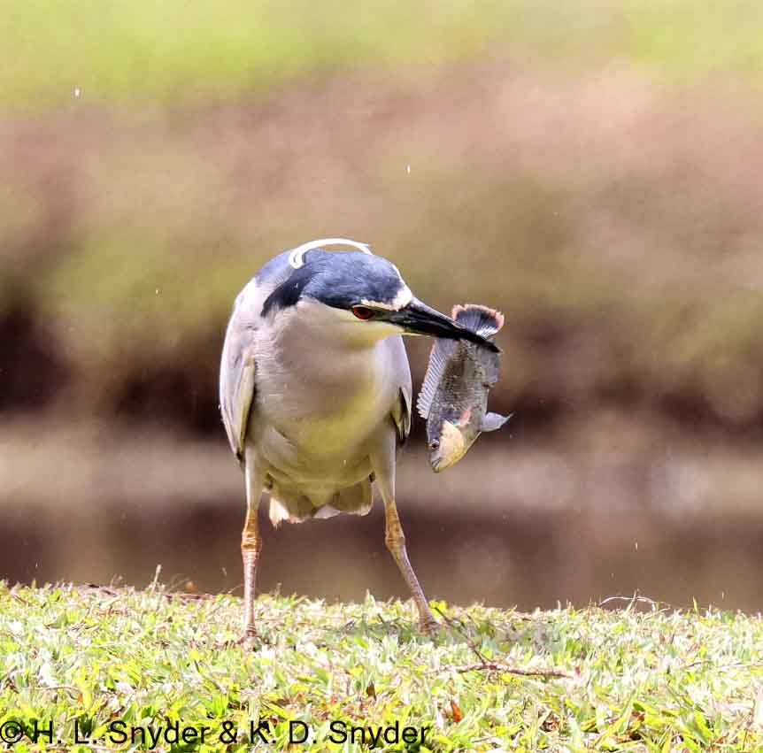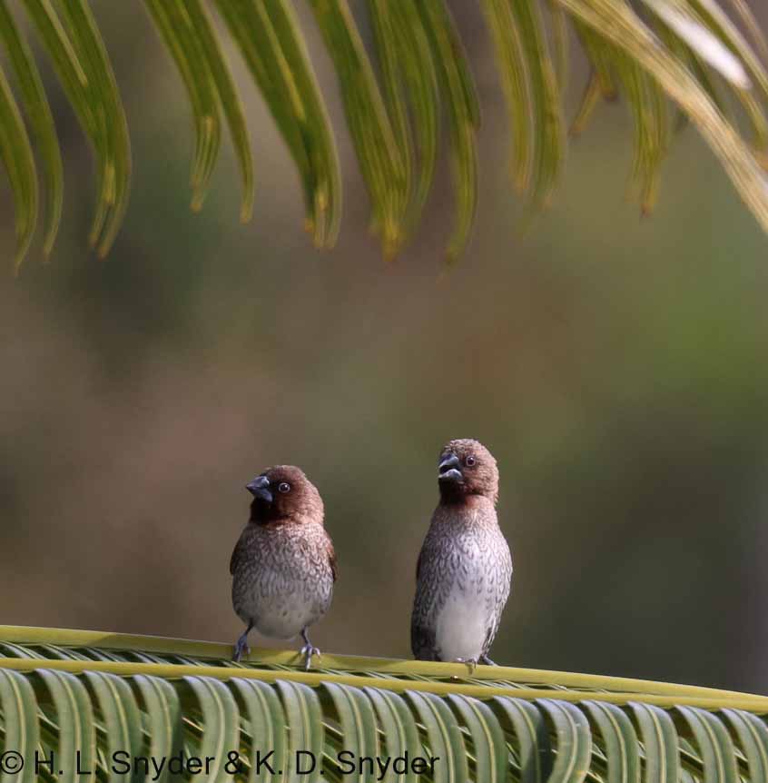 3/11/23 Hanalei NWR, Kauai, HI: Hawaiian Duck (Kauai endemic though hybrids found on other HI islands, f-white around eye, m), Hawaiian Goose (Nene – HI endemic), Black-necked Stilt (HI subsp.), Common Gallinule (HI subsp,), and Black-crowned Night-Heron with its catch. Also: Greater Necklaced Laughingthrush and Java Sparrow .