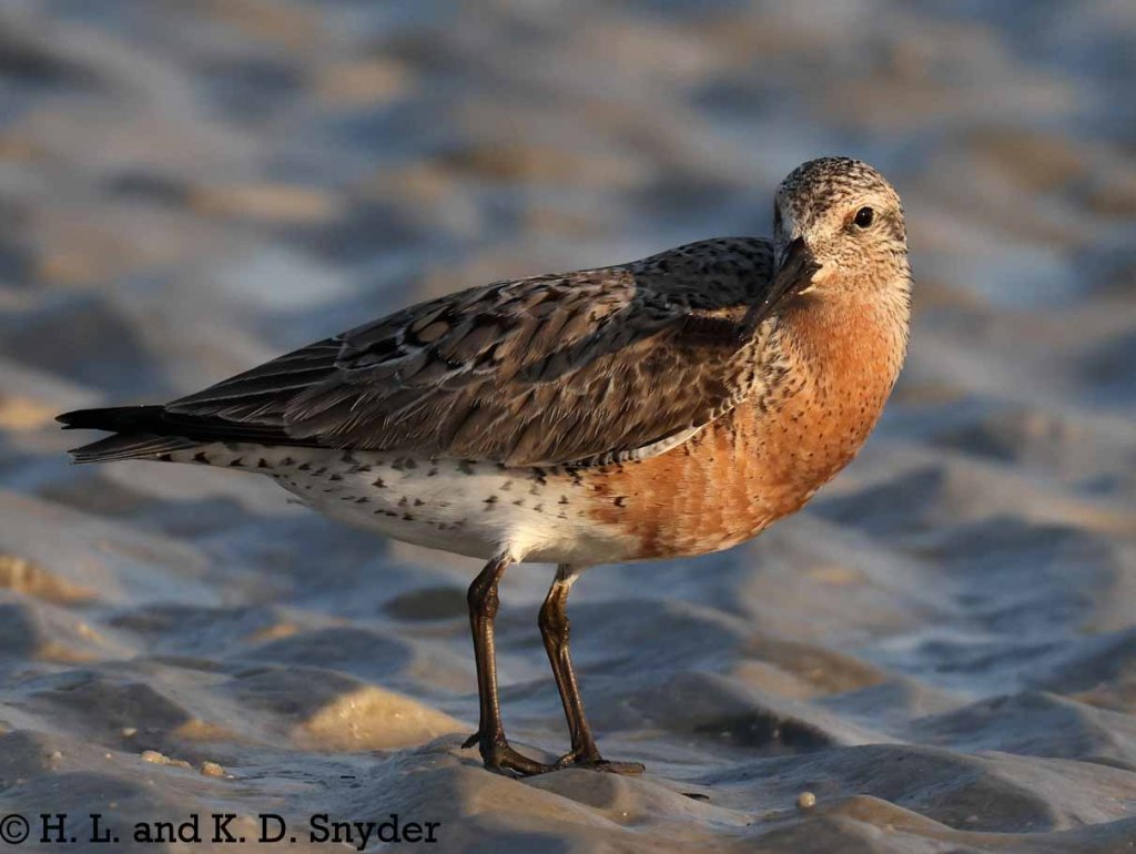 5/18/22 Jacksonville, FL: It was so great to see a rare flock of breeding plumaged Red Knots! These birds can be so shy and looked hungry – one needs patience to study them. PLEASE be careful with them. Always keep dogs on leashes to protect our shorebirds and politely educate others on the beach as well. (We saw a fellow last week allowing his dog to chase Least Terns. (Haven’t seen Least Terns nest on our beach for many years now. These birds are quickly vanishing. )