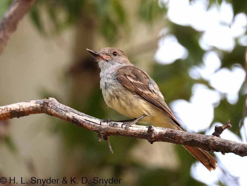 6/10/22 Happy Valley Rd, Tucson, AZ: A Nutting’s Flycatcher was being reported at this location and we were able to see it! Unfortunately for the poor bird, it had a broken bill. This telltale marking, however, made us sure we had found it among the similar Ash-throated (2pics) and Brown-crested (1pic) Flycatchers that swarmed the area.