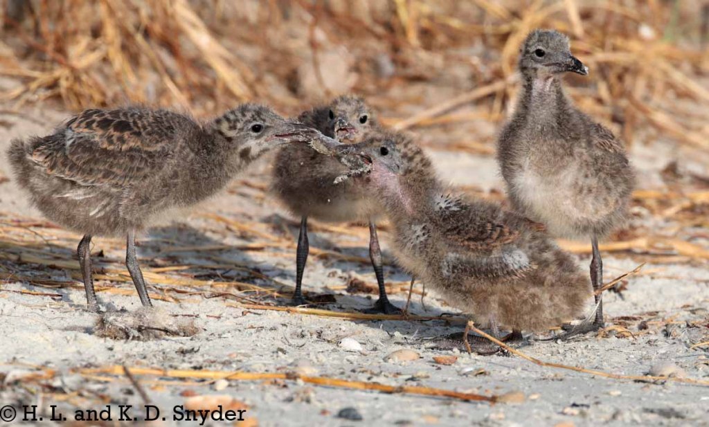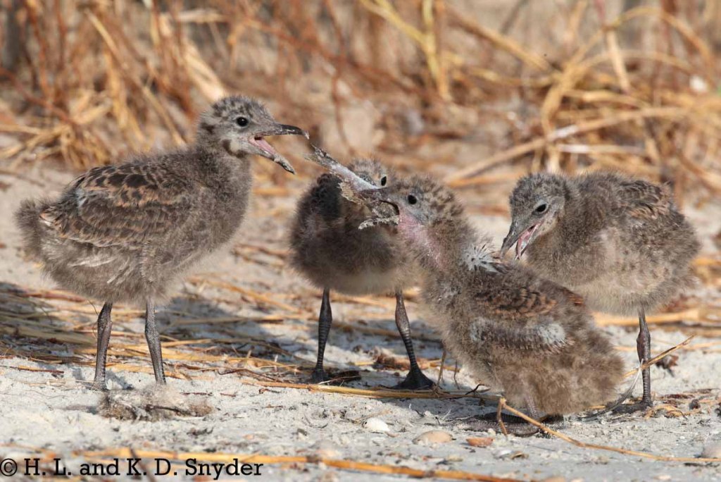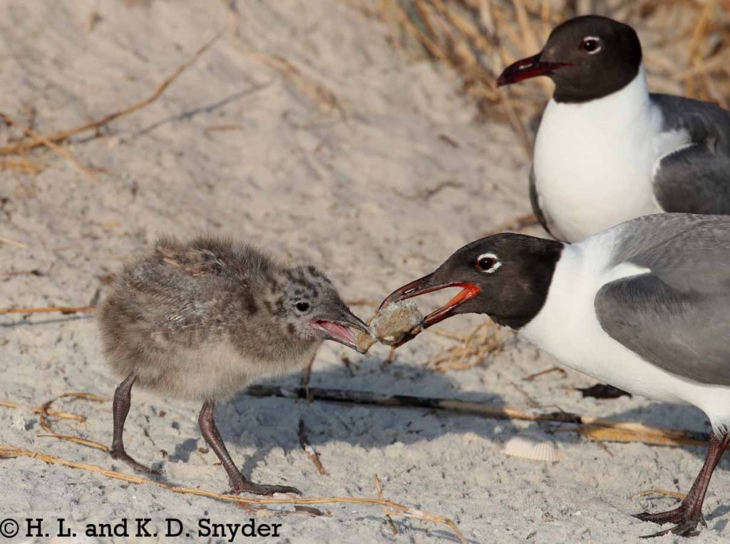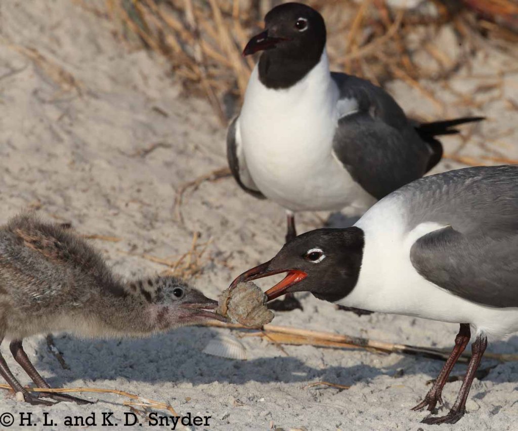 Jacksonville, FL 6/10/21: The Laughing Gull colony at Huguenot Memorial Park was in full swing with many chicks of various sizes. Shown here: a series of images regarding a chick whose parents were trying to feed it something it simply could not swallow. The little guy tried hard!