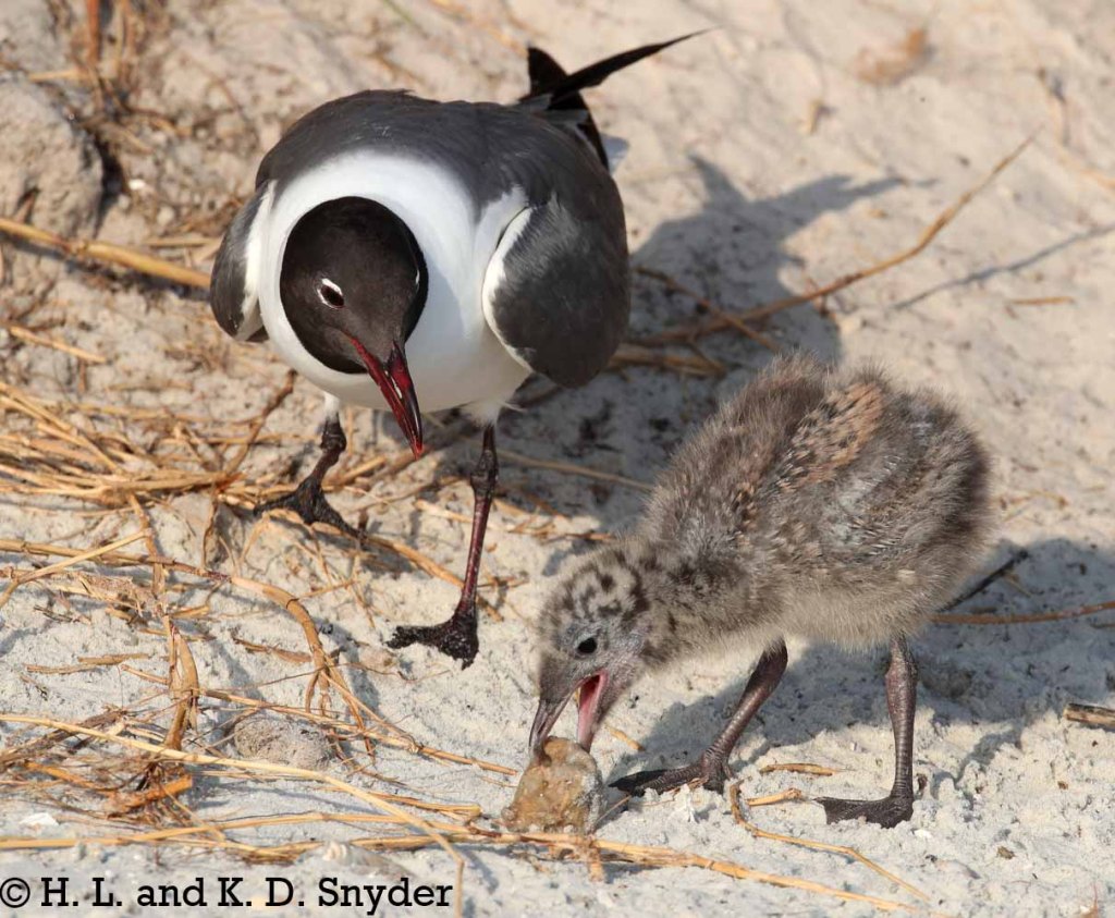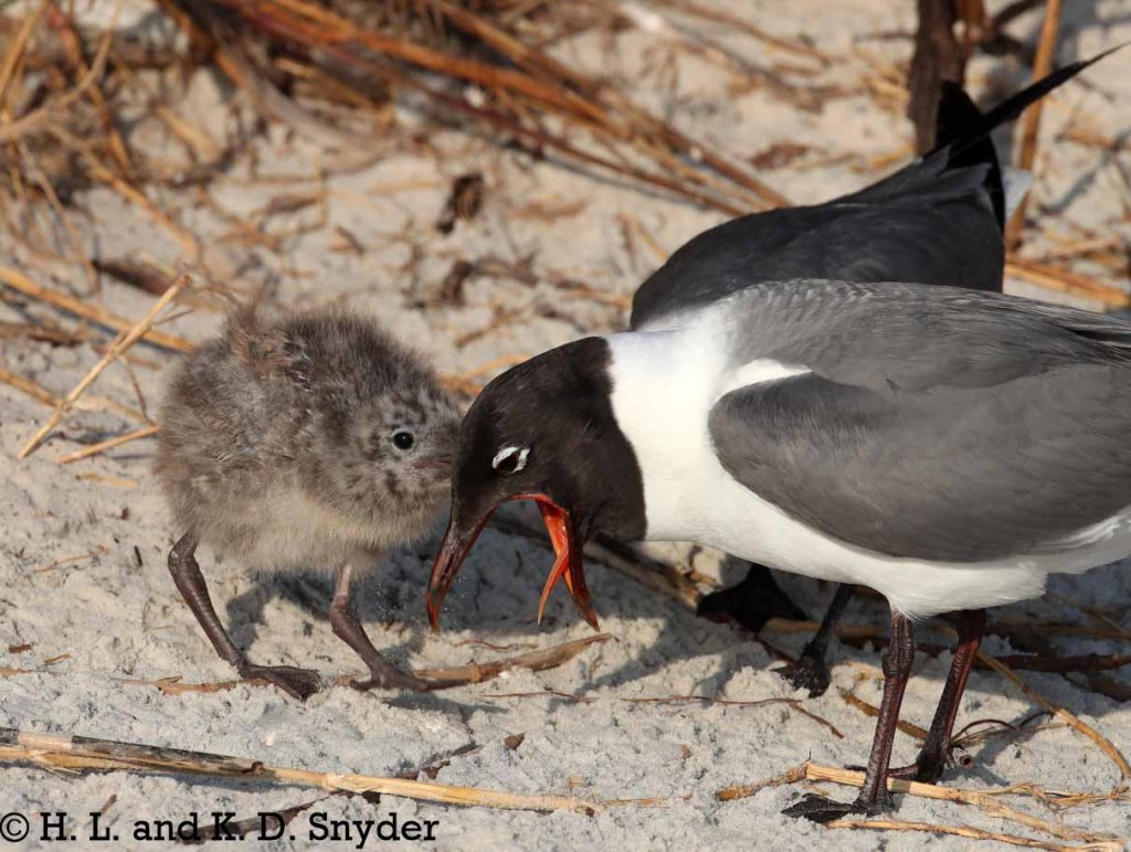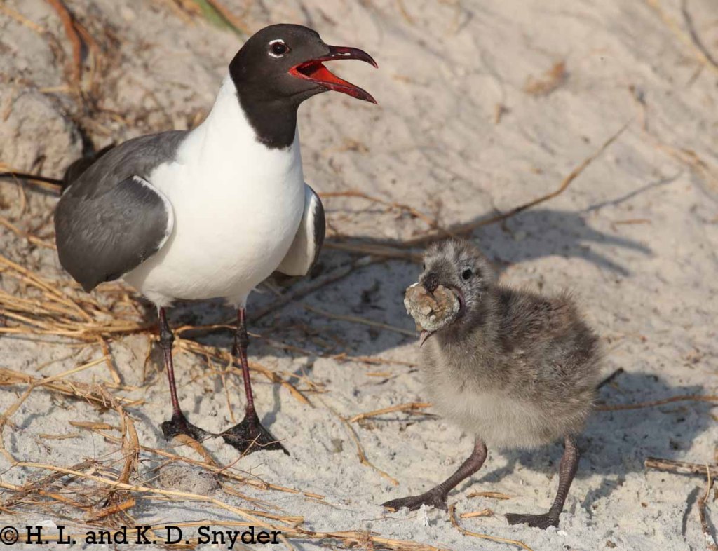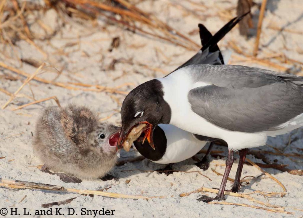 Jacksonville, FL 6/10/21: The Laughing Gull colony at Huguenot Memorial Park was in full swing with many chicks of various sizes. Shown here: a series of images regarding a chick whose parents were trying to feed it something it simply could not swallow. The little guy tried hard!