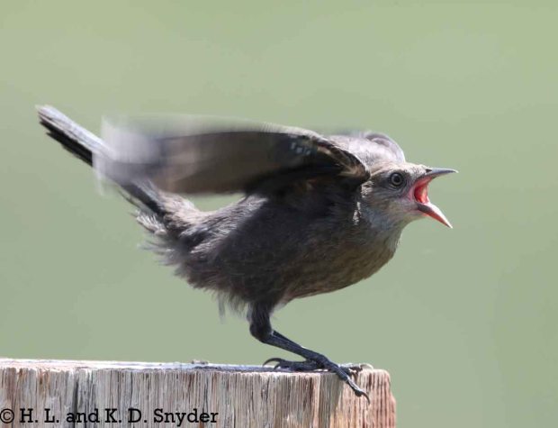 Gunnison, CO: Townsend’s Solitaire , Red-tailed Hawk , Mountain Bluebird , m, juvenile with f), Brewer’s Sparrow , Common Grackle with begging juv., Brewer’s Blackbird (f), and a predawn American Kestrel breakfasting on a bird. We had never seen one take another bird before.