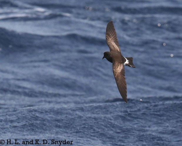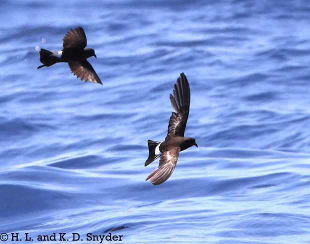 Wilson’s Storm-Petrel with Leach’s Storm-Petrel above: